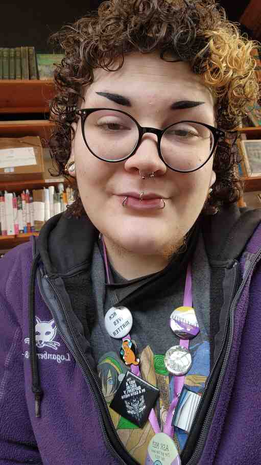 Cat (she/her) has loved Loganberry for many years and is thrilled to be among the ranks of wonderful folks here. She oversees the children’s section of the store as well as the card and tchotchke displays and buying. Cat is a Cleveland native but moved back in the Fall of 2022 after living in Chicago for nine years. She holds a Bachelor’s in Specialized Studies from Ohio University, and a Bachelor’s in American Sign Language – English Interpretation from Columbia College Chicago. She is passionate about accessibility and equity, mental health, social justice, and LGBTQ+ rights. Cat hopes to earn a Master’s degree in a field relating to one (or all) of these things someday. Come say hi!