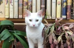 Otis joined us in the spring of 2008. Harriett was leaving for work when all of a sudden a very loud grey-and-white kitten appeared and demanded a job in book sales. He was very persuasive and Harriett decided to offer him a position. And that is how Loganberry Books became “the bookstore with the cat.”