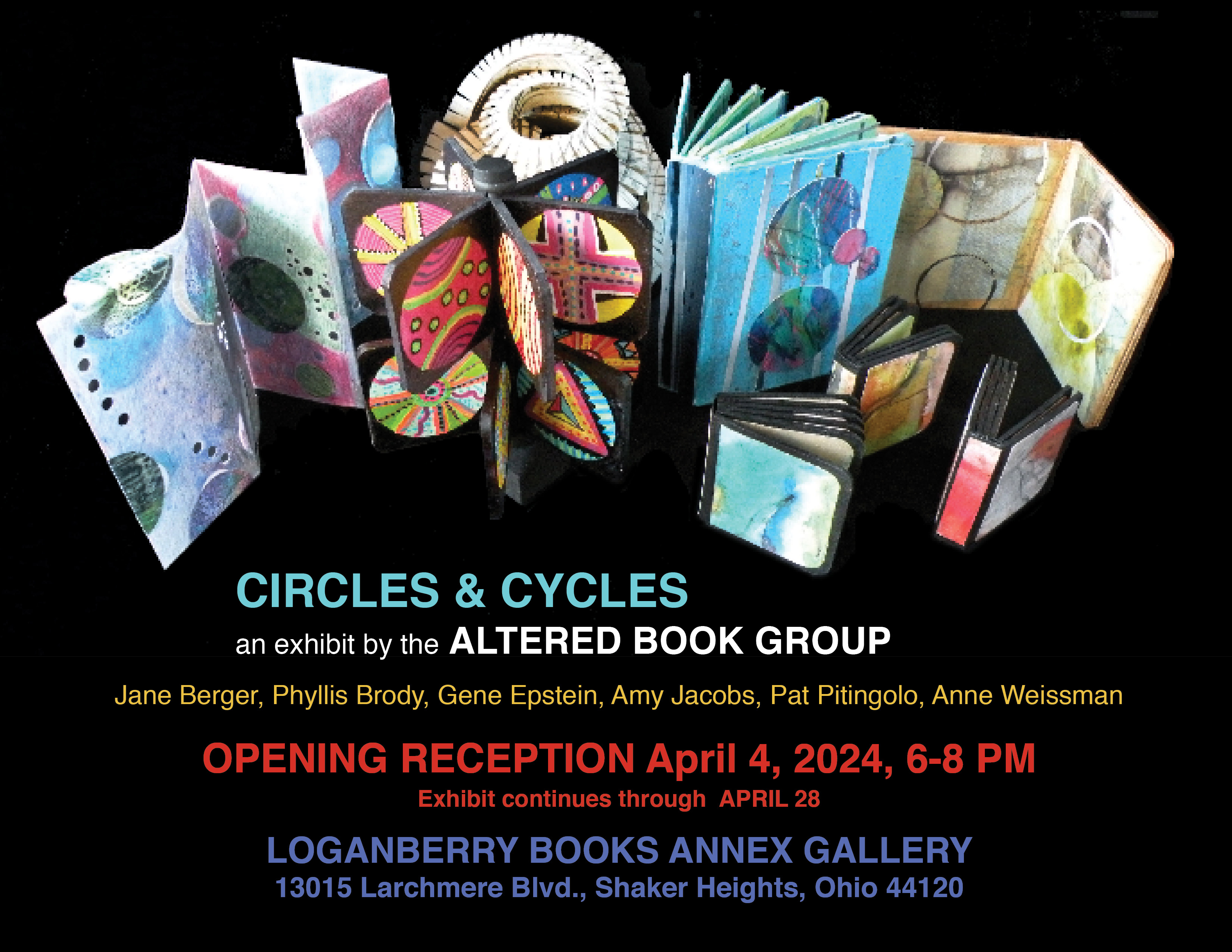 The Altered Book Group is comprised of local artists Jane Berger, Phyllis Brody, Gene Epstein, Amy Jacobs, Pat Pitingolo, and Anne Weissman.