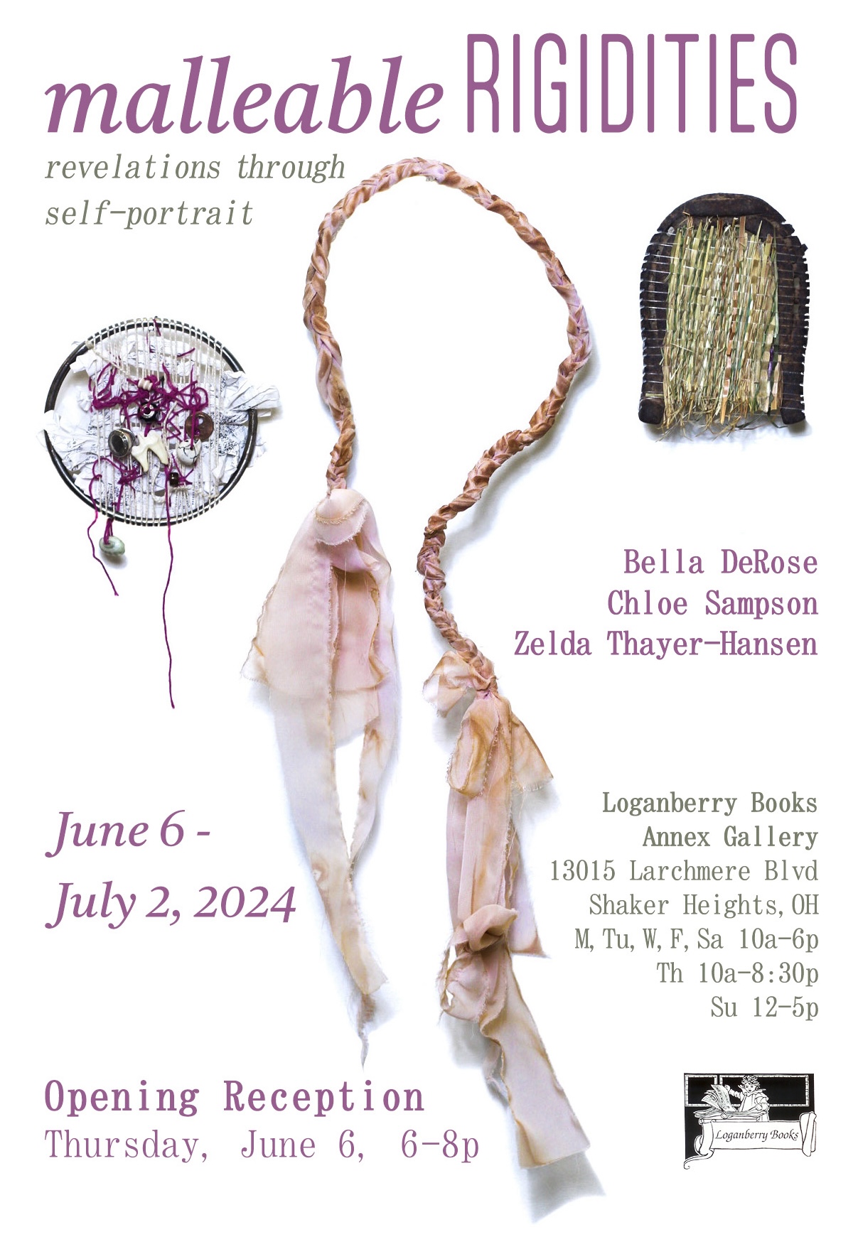 Malleable Rigidities: Revelations Through Self-Portrait is a collaborative show discussing how research and experiment-based practices with metal, fiber, mixed-media collage, found object, and print media unite to reveal the possibilities of material transformation, collaborative discovery, and flow within the apparent inflexibilities of each of their lives.